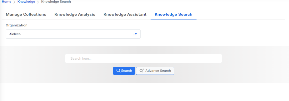 - On the main menu bar, click on Knowledge, and then click Knowledge Search tab.