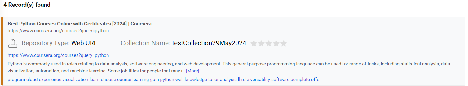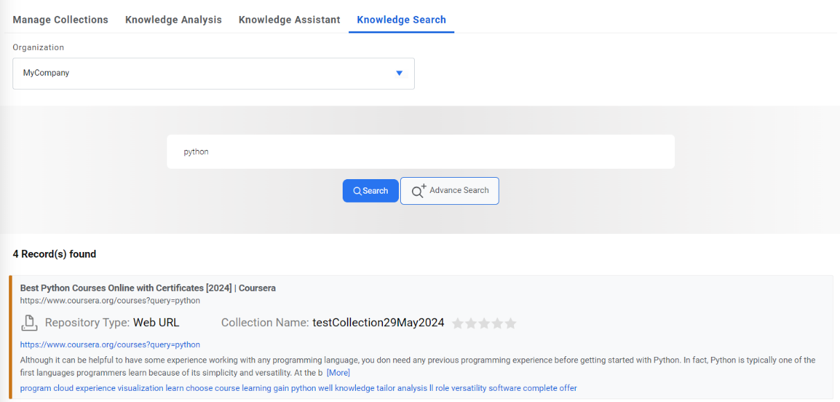 specified in the Advance Search box.Figure 4. Advance Search Results