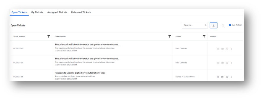 This section describes how total open tickets in iAutomate are executed in either Auto or Manual mode.