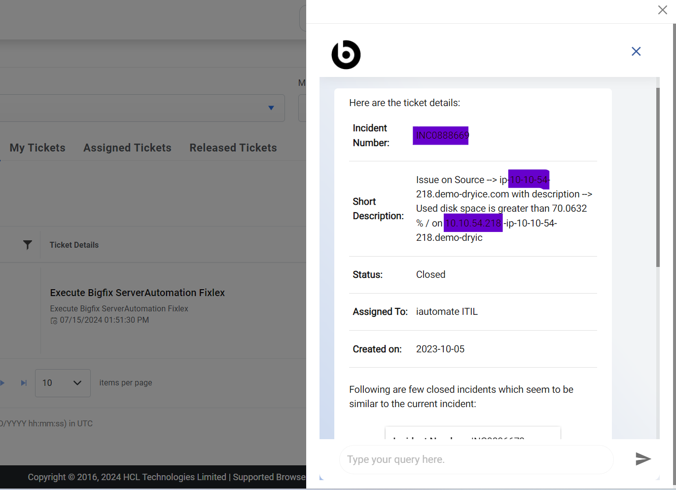 - If the execution criteria for a ticket, as detailed in the Runbook Execution, are not met, a Release button appears next to the ticket so the user can release the ticket from the iAutomate queue.
