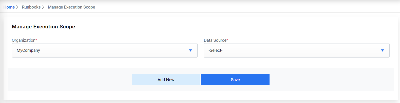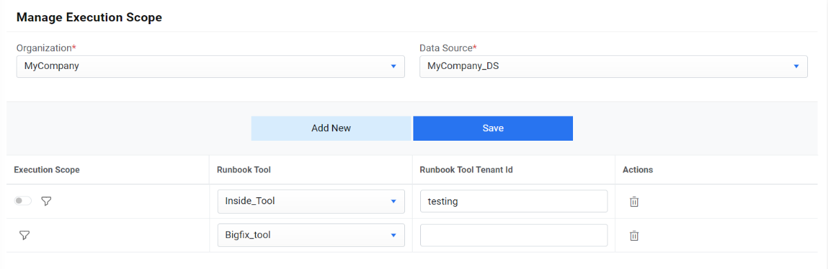 - Go to Actions then Runbooks and click Manage Execution Scope.