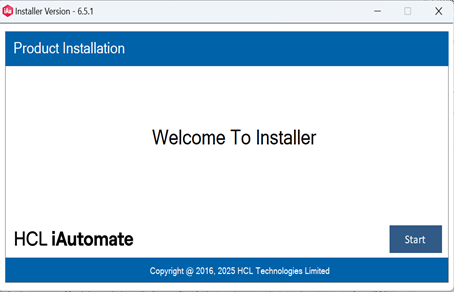 Click Start, the following page appears. It will extract required binaries.Figure 2. iAutomate Installer Welcome Page