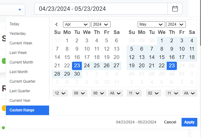 more reports on the active Dashboard tab. This filter lets you select a specific time frame,