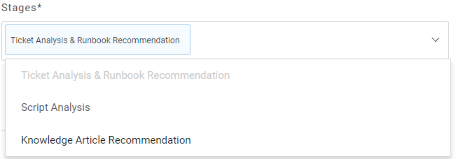 - Select the stages from the Stages dropdown. Ticket Analysis and Runbook