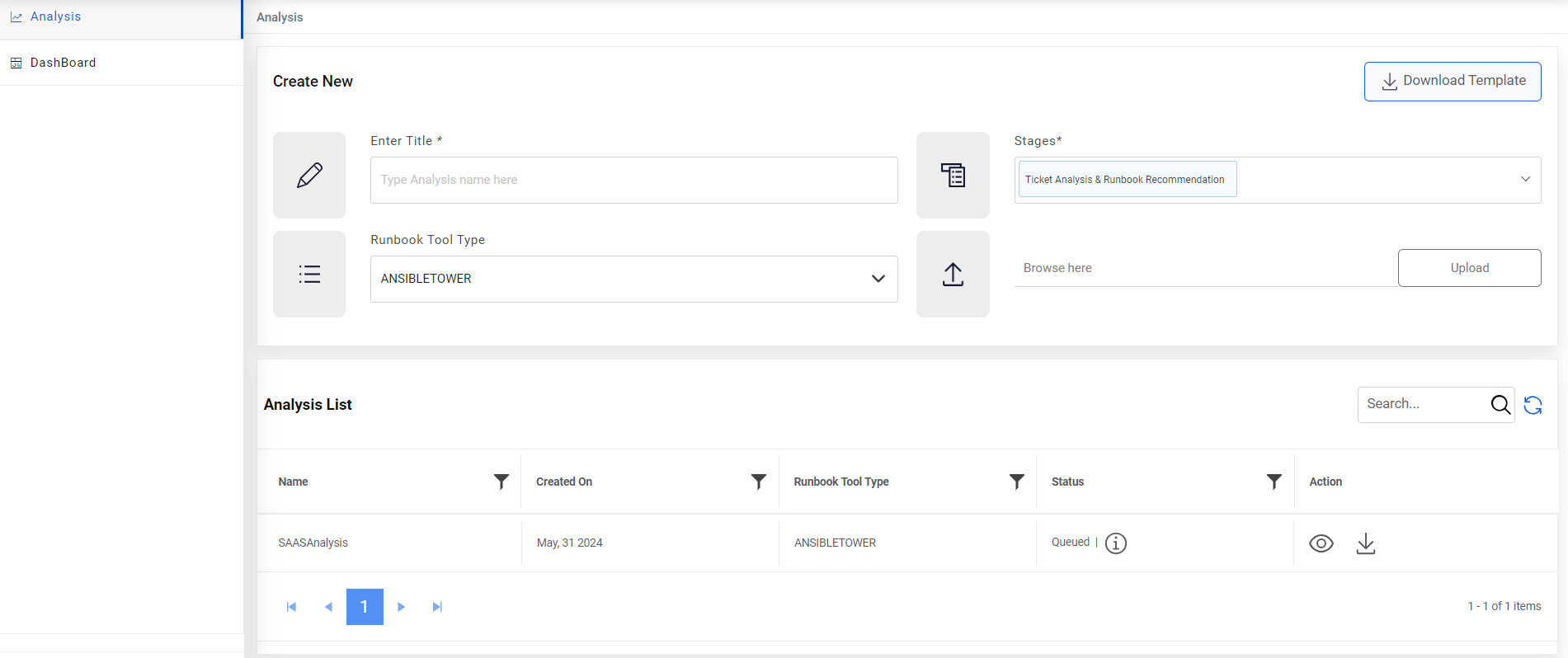 Figure 2. SaaS based Ticket Analysis – Create New Analysis