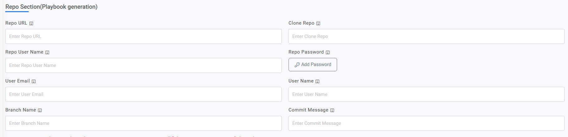 playbook generated from GenAI Studio needs to be pushed in Git repo.Figure 11. Repo Section (Playbook Generation)
