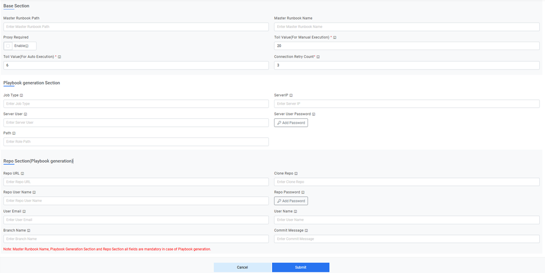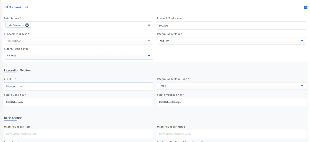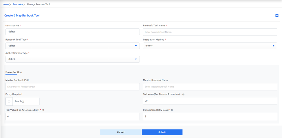 Runbook Tool Type: Select the type of runbook tool from the drop-down.