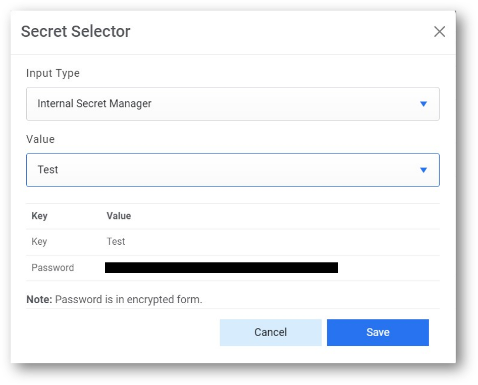 such as CyberArk or Secret Manager then select Input Type as CyberArk or Secret Manager
