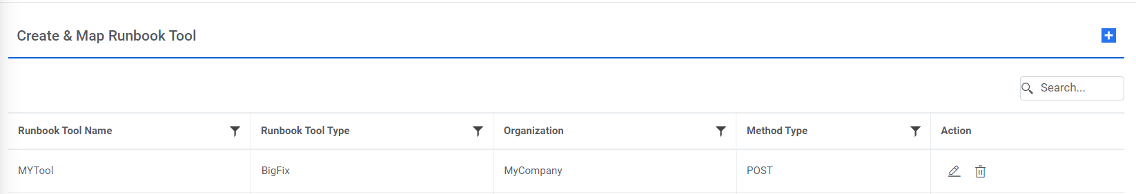 On the Manage Runbook Tool screen, click on corresponding to the Runbook tool that you want to