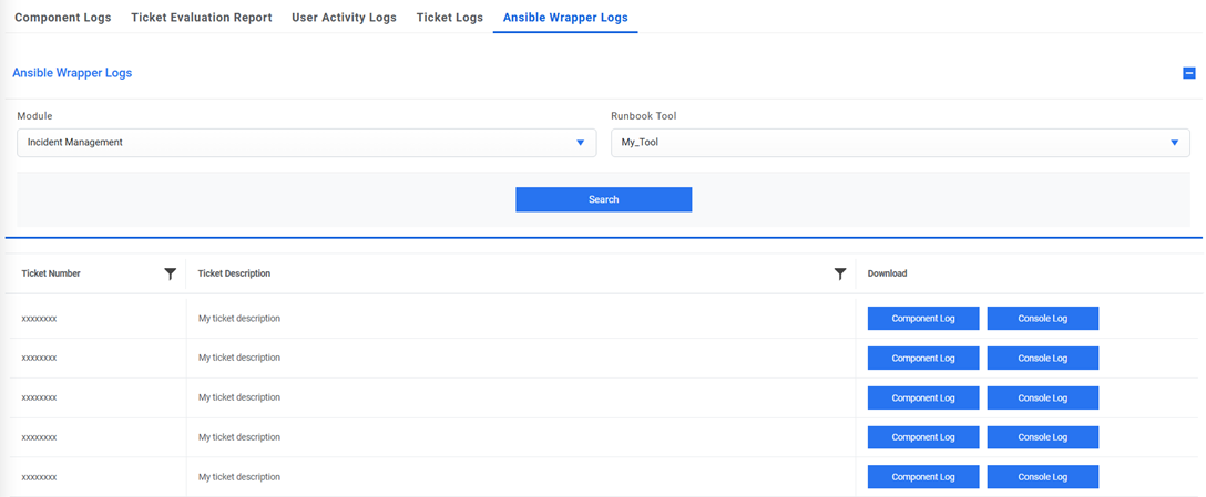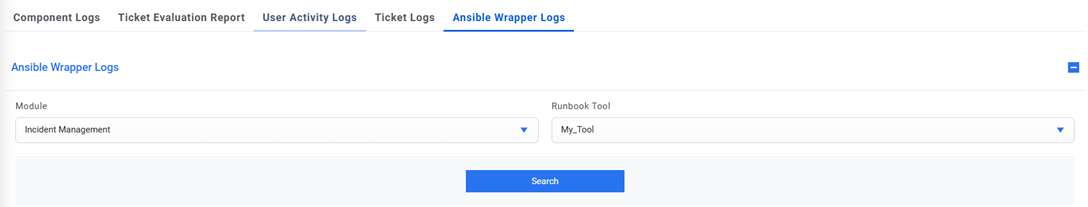 populated here). Click Search. All the executed tickets under this tool will be populated in