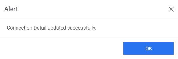 - Click the Edit icon under the Action tab to edit the details.Note:On the click of edit, the connection string will only be visible in the textbox if the below key is set to 'Y' in BaseUI’s web.config. If its value is ‘N’, then the Connection String textbox will be empty.