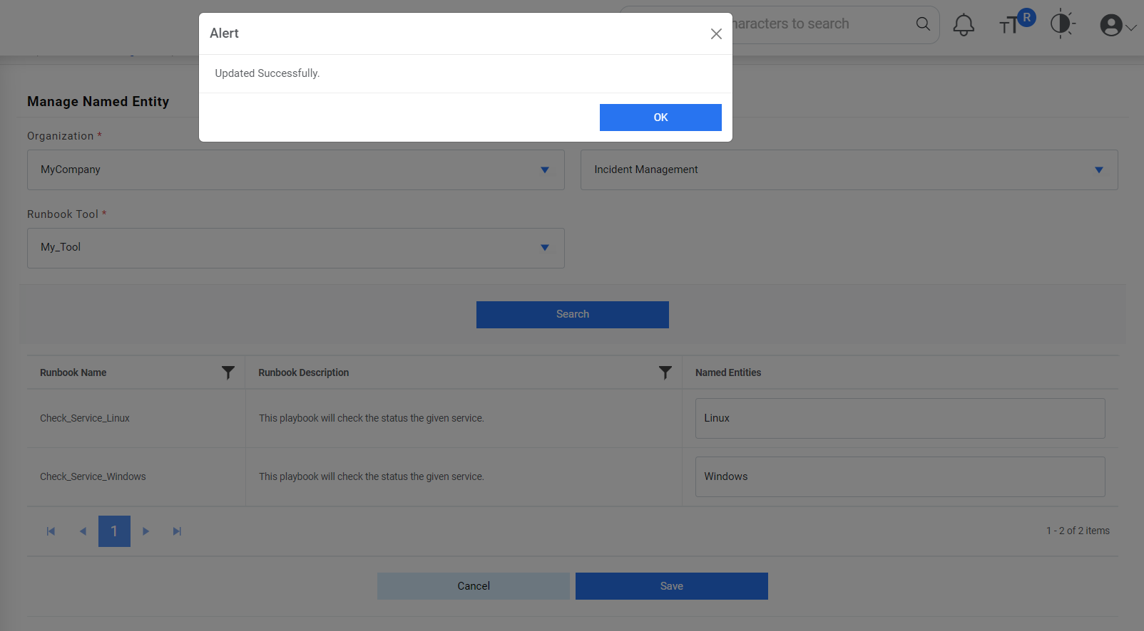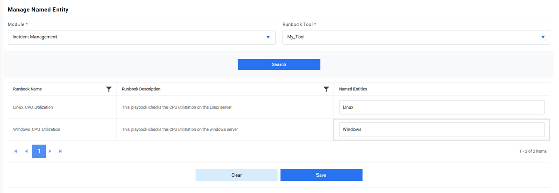 Note:It is not mandatory to mention the named entities for every runbook. It should be used only if required. Multiple values can be provided as comma separated values.