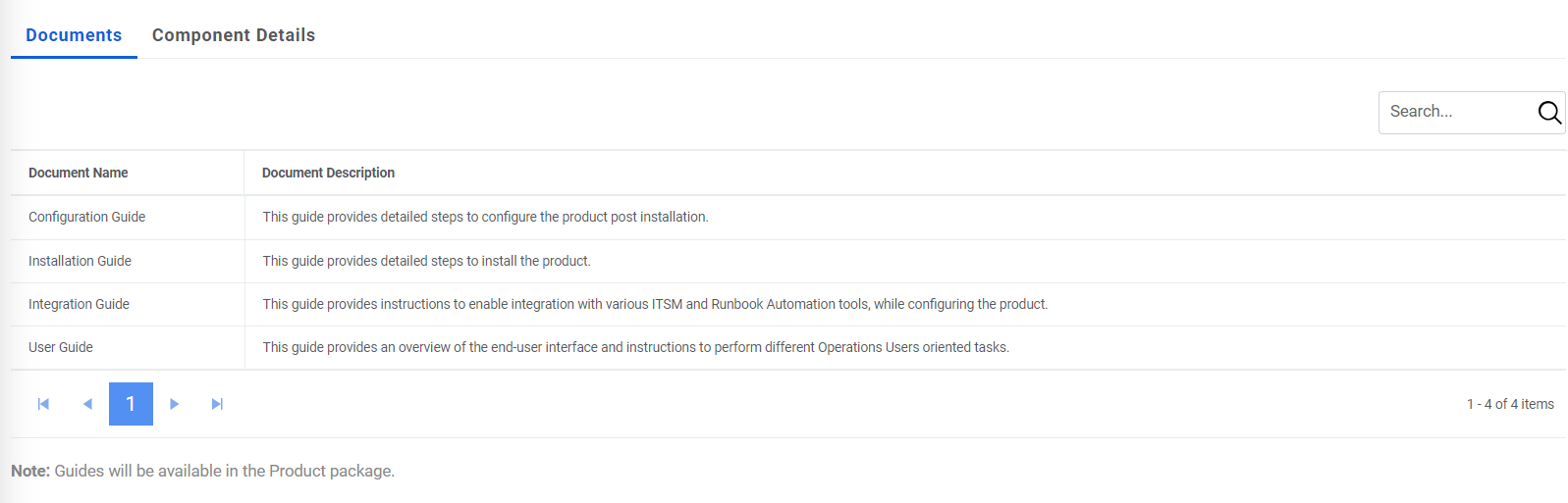 This page helps the user to locate the necessary documents for better understanding of the tool as well as get the details of the components being run in iAutomate.