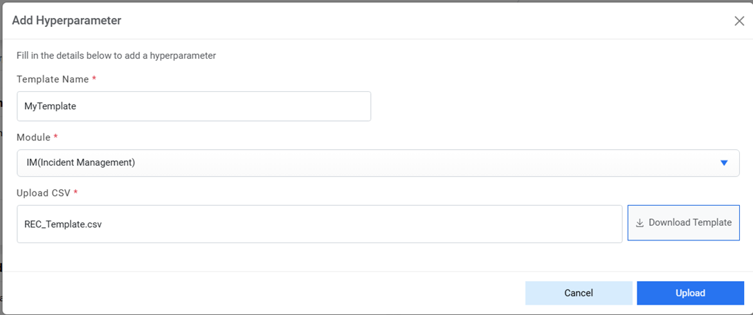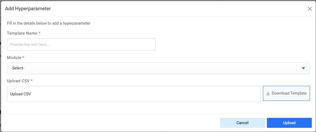 Hyperparameter popup appears.Figure 8. Add New Template (Cont.)