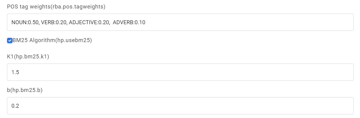 - usePOSWeights: Uses true or false values to enable or disable rba.pos.tagweights parameter.