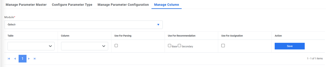 This lists the existing parameters used for parsing and recommendation in a tabular view for the selected organization. Users can also add a new configuration or delete the existing configuration.
