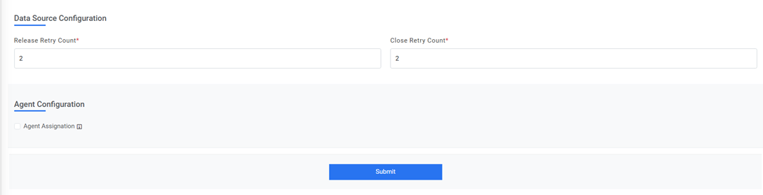 - In the Data Source Configuration field, enter the Release Retry Count. This indicates the maximum number of retry attempts for releasing the ticket.