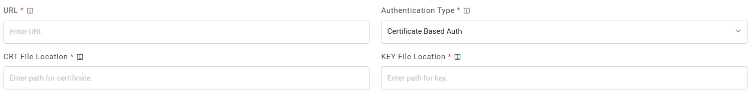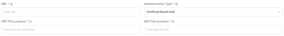 - Selection of Certificate based Auth requires CRT file location and Key file location of