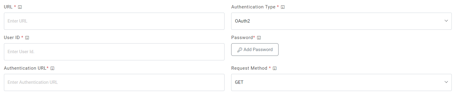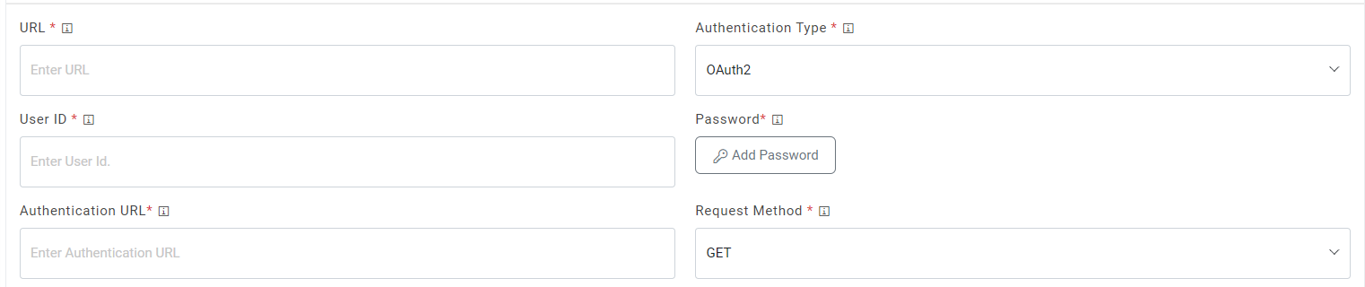 - Selection of OAuth2 authentication type, users needs to provide the below