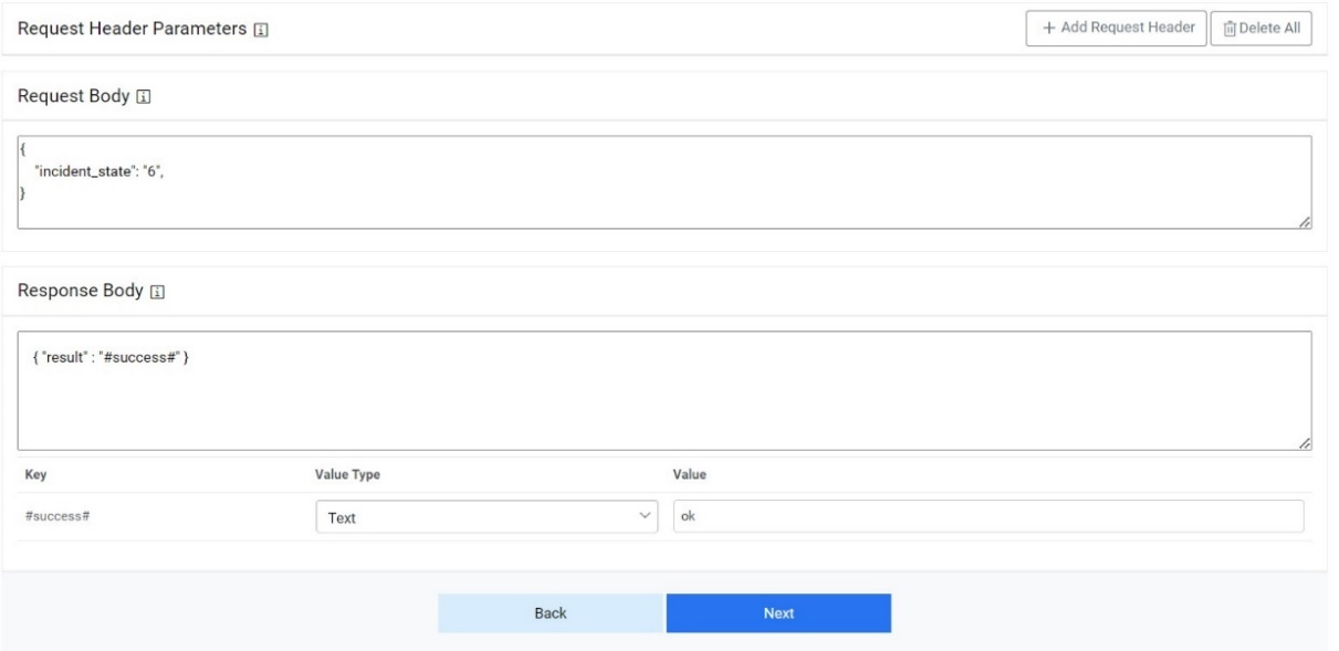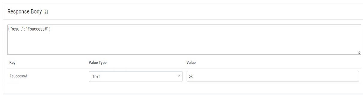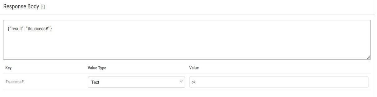 Note:The values for parameters will be set in the Mange Rules section. - Type the Response Body in JSON format.