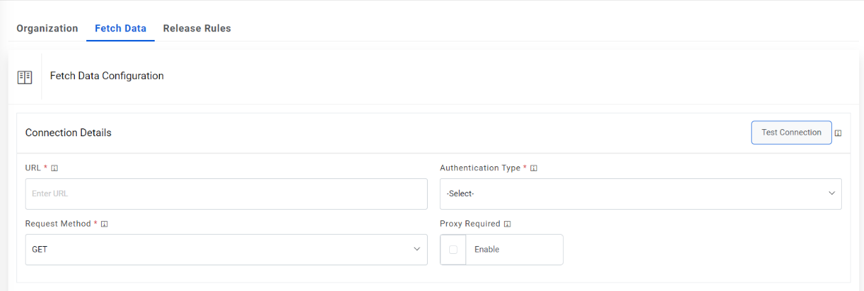 - On the Fetch Data Configuration page, type the URL of the selected service type in the URL field to fetch data.