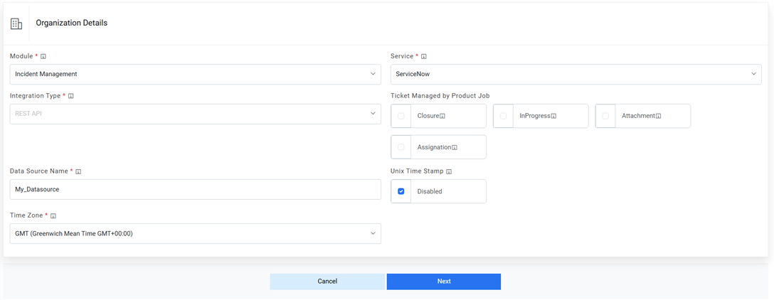 - Unix Time Stamp: By default, its disabled but if ITSM provides response in different time format such as UNIX then this needs to be unchecked.