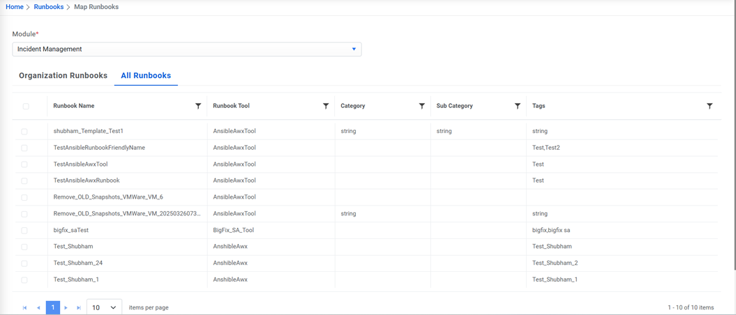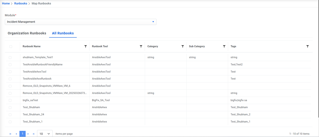 - Organization Runbooks- It lists all the runbooks mapped to the selected organization.