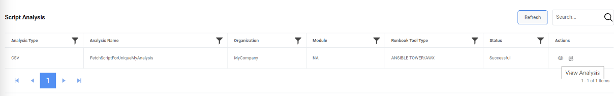 Note:Users cannot edit a script after the analysis is approved.While saving, user can add this created script as a runbook to the runbook tools present in the system by giving a user-friendly name. Then click on Submit. The created script will now be visible under the selected runbook tool.
