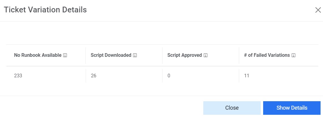 in the categories - No Runbook Available, Script Downloaded, and Script