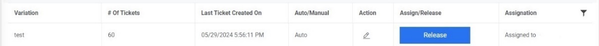 Note:If user clicks Release, then the variation status will again change to Assign and will become available for assignment to another user. - In the Action column, click