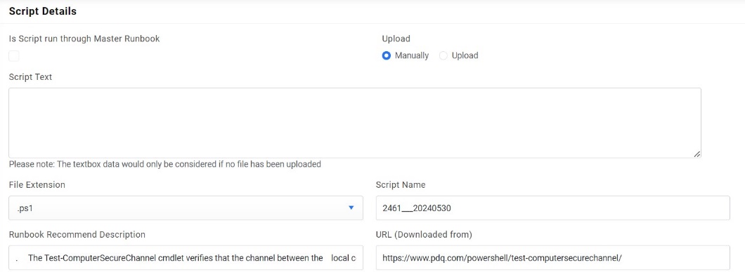 for which No Runbook Available, Script Downloaded but not Approved, Script Available,