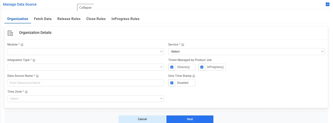 - Select the Module as Incident Management since we are configuring this data source for pulling the incident tickets.