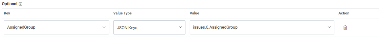 Key Value Type Value AssignedGroup JSON.Keys result.0. AssignedGroup Figure 12. Optional Parameter Mapping