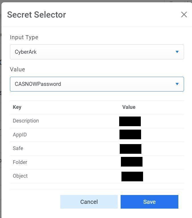 Key Vault such as CyberArk or Secret Manager then select Input Type as CyberArk or Secret