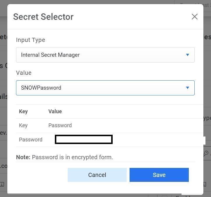 - Password - For password, click on icon next to it. If the password is available in plaintext, then select Input type as Input Text and enter the password in Value field. Else if it is available in Azure Key Vault then select Input Type as Azure Key Vault and then select any of the configured details from the value field. Else if it is available in any Key Vault such as CyberArk or Secret Manager then select Input Type as CyberArk or Secret Manager respectively and then select any of the configured details from the value field.