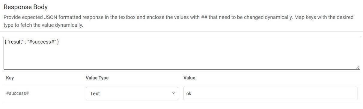 - Response Body – In this section, please enter the response body in JSON