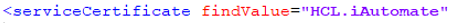the value of attribute ‘findValue’ with the updated Certificate Name.