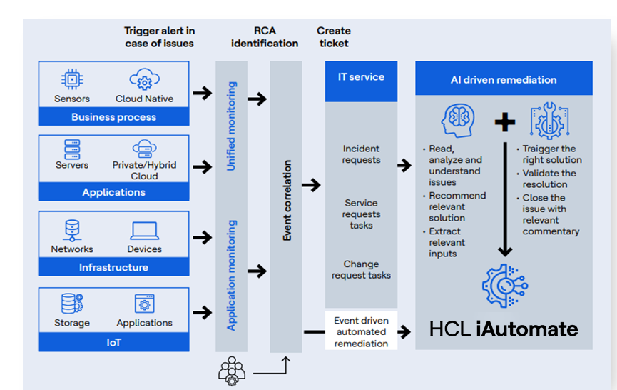 iAutomate is an Intelligent Runbook Automation product which is equipped with Artificial Intelligence, Machine Learning and Natural Language Processing (NLP) capabilities for simplifying and automating the IT Operations issues resolution lifecycle including incidents, service request tasks, change request tasks, and events. It leverages its NLP capabilities for analyzing and understanding the context of a specific issue, recommends the most relevant solution and even triggers the execution, thereby enabling Zero Touch Automated Remediation. It also provides AI-driven Knowledge Recommendation by suggesting relevant knowledge articles from various repositories, both internal and external, as and when required by human agents.