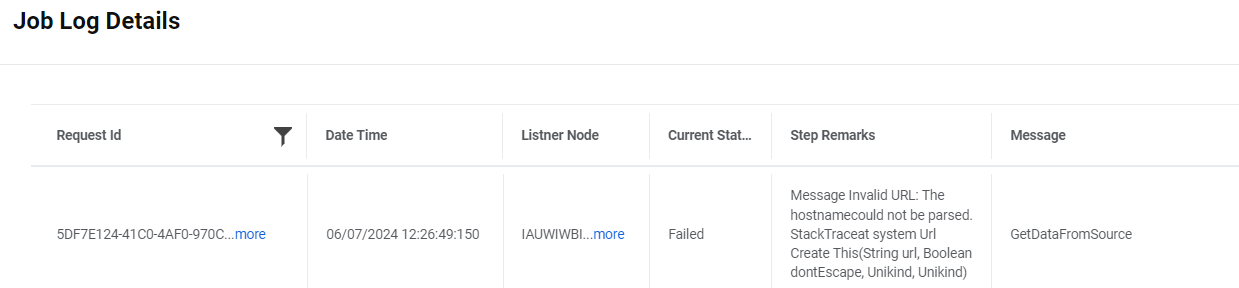 | Issue description | Failed to fetch data from the URL and Job is stuck while fetching the details from the source. |