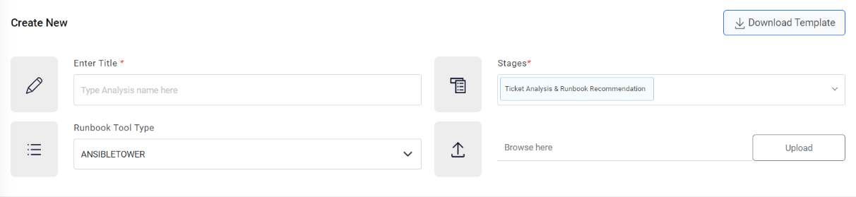 - Click Download Template, to download the template in which the data needs to be provided to the system. Ensure that the ticket data from the IT Service Management tool is extracted in the same format.