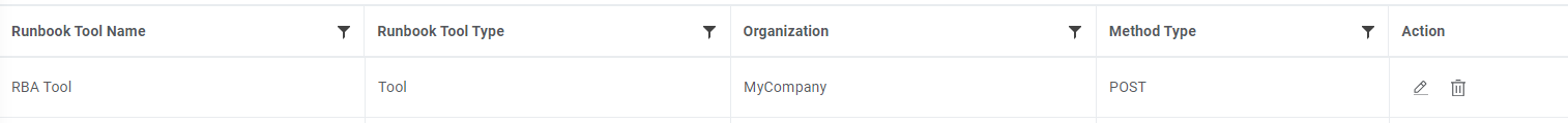 - To view the newly created Runbook Tool, go to Action -> Runbooks -> Manage Runbook