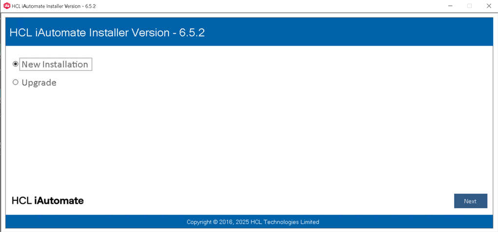 the installation. On running the installer, the following page will appear.Figure 1. iAutomate Implementation