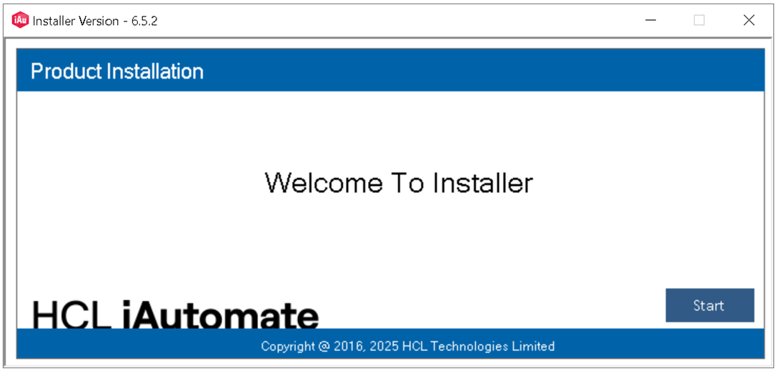 Click Start, the following page appears. It will extract required binaries.Figure 2. iAutomate Installer Welcome Page