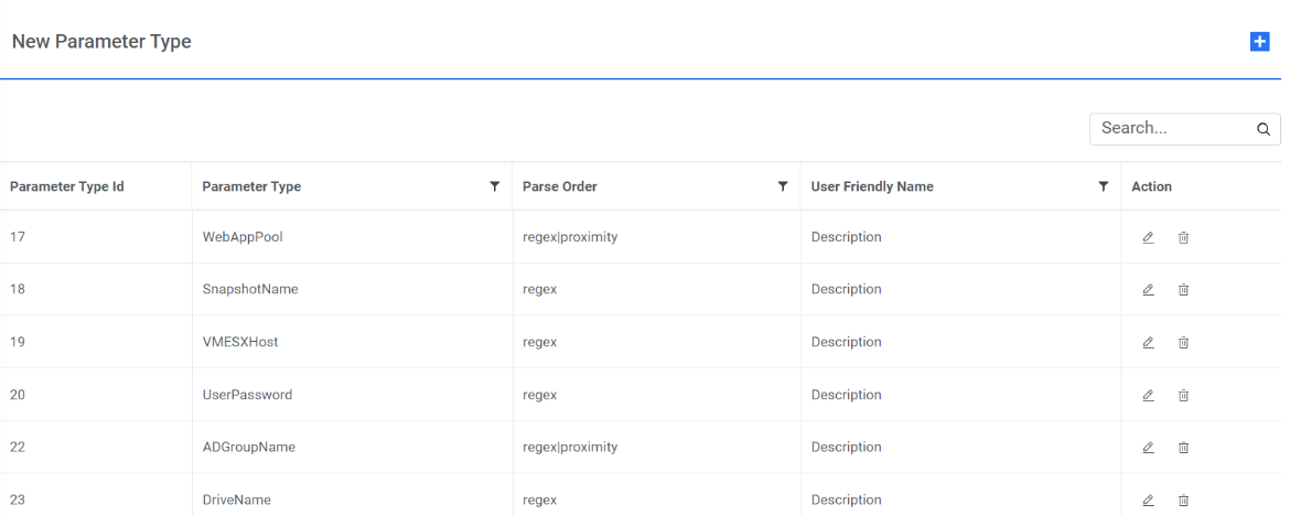 - Manage Parameter Master – Defines regular expression for parameter to be parsed. It should be unique to parameter type.
