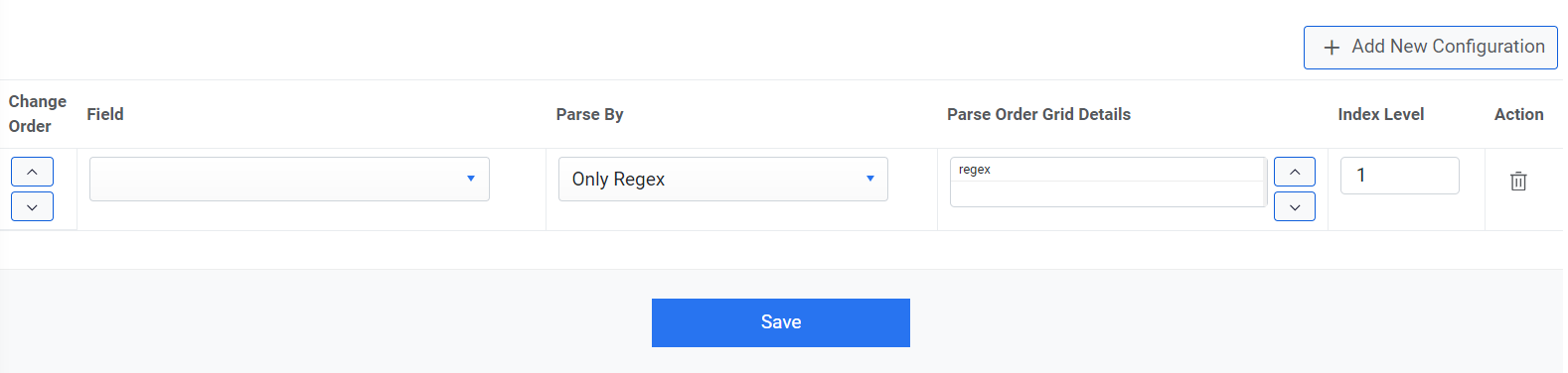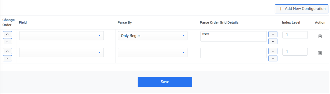 - Select a value for Parse Order Grid Details columns as Regex.