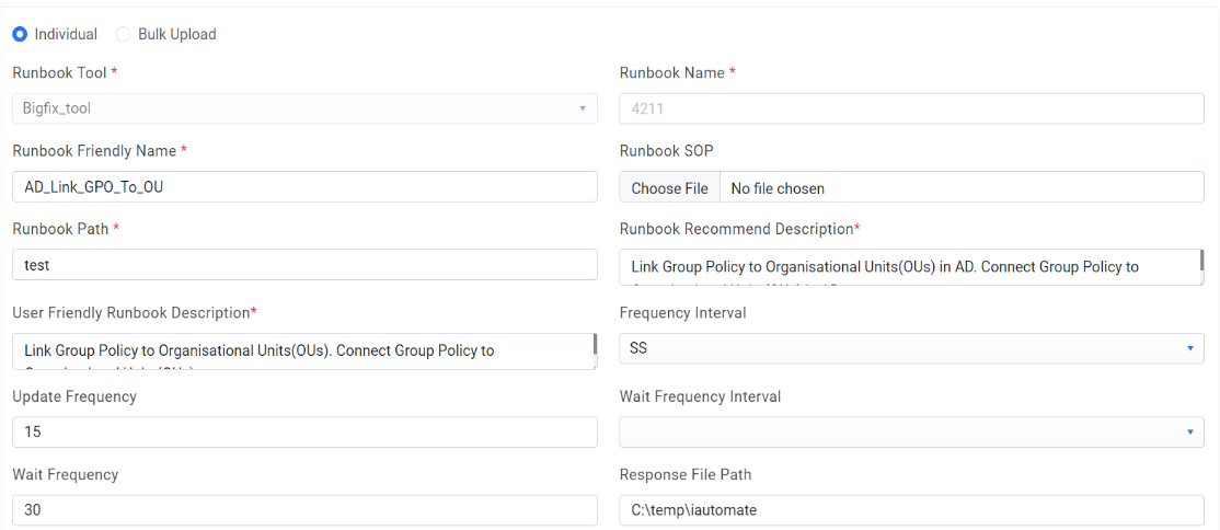 - Select value for Runbook Tool.