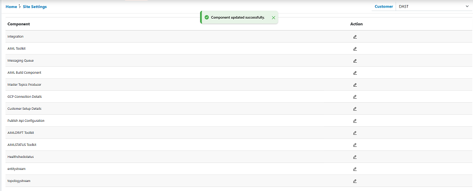 - On successful update the following message “Component Updated Successfully” is prompted