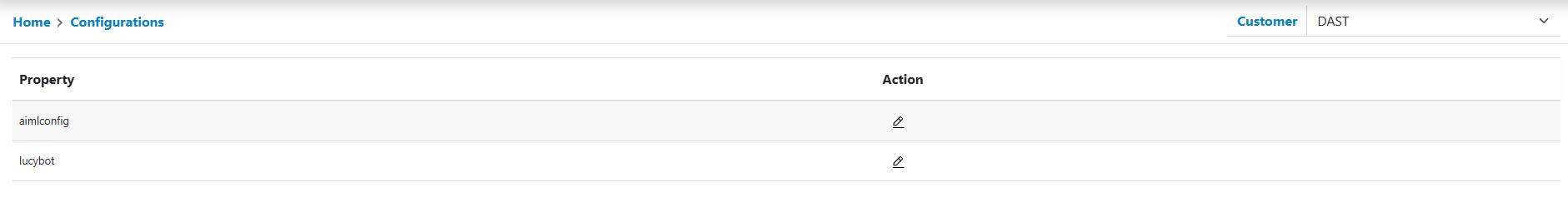 - In addition to the default configuration, users can specify customer specific key values as all. Clicking on the Dropdown displays all the customers created within the environment.