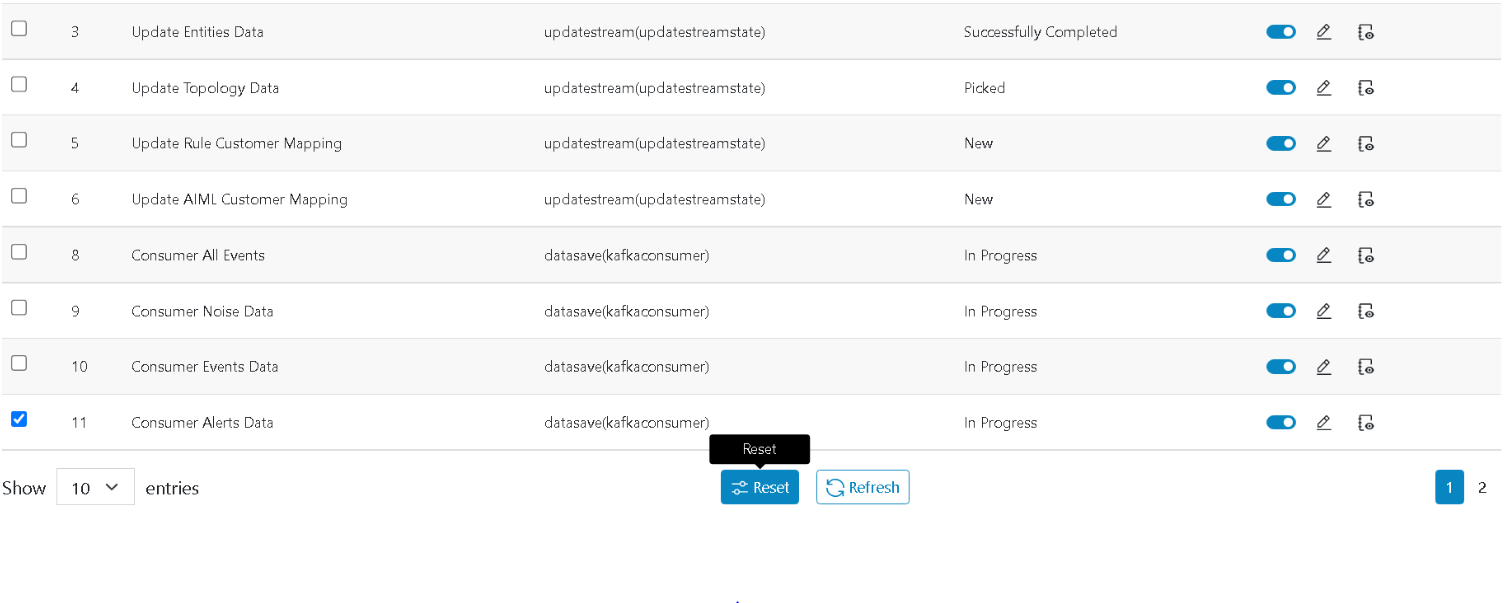 In such scenarios, users can use this action to reset the states, so that it can be picked and processed again. Note this also enables us to reinitiate the long running jobs as user ll such as the consumer or streaming jobs, in both cases resetting will restart the respective processing.