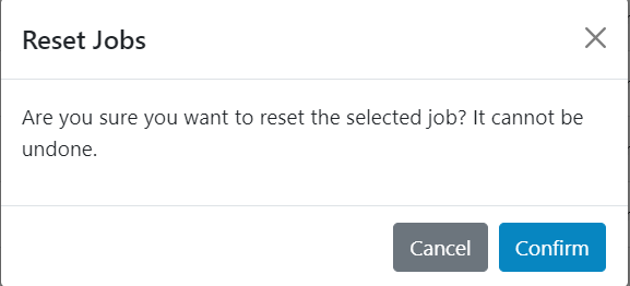 Reset action enables us to reset the current state of the running jobs. This action is used if the processing’s seems to be stuck e.g., it’s lying in picked state or in in progress state in case of scheduled jobs where the expected state is to be either completed or failed, this can happen if there’s an issue with the underlying processing component.